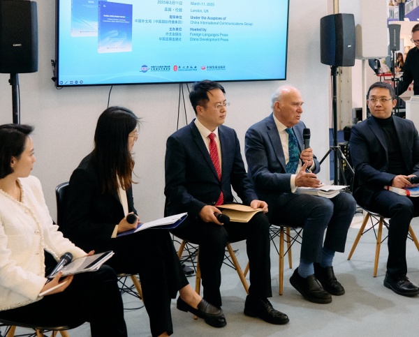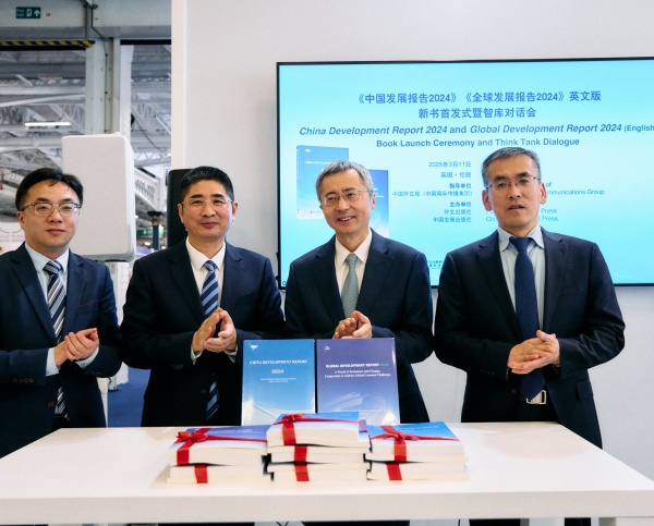 3月11日,由中國(guó)外文局指導(dǎo),外文出版社和中國(guó)發(fā)展出版社主辦的《中國(guó)發(fā)展報(bào)告2024》《全球發(fā)展報(bào)告2024》英文版新書首發(fā)式暨智庫對(duì)話會(huì)在2025年倫敦國(guó)際書展上舉行。中國(guó)駐英國(guó)大使館臨時(shí)代辦王起公使,中國(guó)發(fā)展出版社社長(zhǎng)王忠宏,英國(guó)前商業(yè)、創(chuàng)新和技能大臣文斯·凱布爾爵士,英國(guó)48家集團(tuán)主席杰克·佩里,以及局屬單位負(fù)責(zé)同志等中外嘉賓40余人出席活動(dòng)。