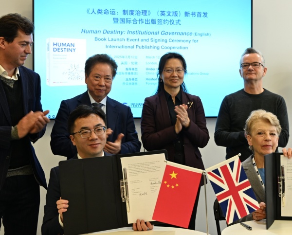 3月12日,由中國(guó)外文局指導(dǎo),外文出版社主辦的《人類命運(yùn):制度治理》(英文版)新書首發(fā)暨國(guó)際合作出版簽約儀式在2025年倫敦國(guó)際書展舉行。