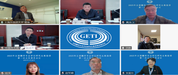 3月20日,全國翻譯專業(yè)學(xué)位研究生教育指導(dǎo)委員會(以下簡稱“教指委”)2025年第一次主任委員會議以視頻方式召開。中國外文局副局長、教指委主任委員于濤出席并主持會議。上海外國語大學(xué)原黨委書記姜鋒、中國外文局人事部主任楊建平、湖南師范大學(xué)原黨委書記蔣洪新、北京外國語大學(xué)高翻學(xué)院院長任文、廣東外語外貿(mào)大學(xué)翻譯研究中心主任趙軍峰等副主任委員,教指委秘書長、上海外國語大學(xué)高翻學(xué)院院長張愛玲出席會議,教指委專家委員會主任、中國外文局原副局長兼總編輯黃友義應(yīng)邀列席會議。