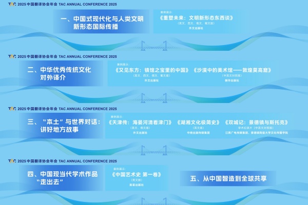 本次年會會期兩天,舉辦“中國時政話語外譯規(guī)范”“推進(jìn)文博翻譯標(biāo)準(zhǔn)化規(guī)范化 助力文博工作‘走出去’”“翻譯與中外文明交流互鑒”“交通天下:人工智能時代的交通翻譯與國際傳播”“AI時代涉外法治翻譯與傳播”等28場專題交流和中國翻譯協(xié)會“譯講堂”年會專場講座,并設(shè)置翻譯行業(yè)成果展。