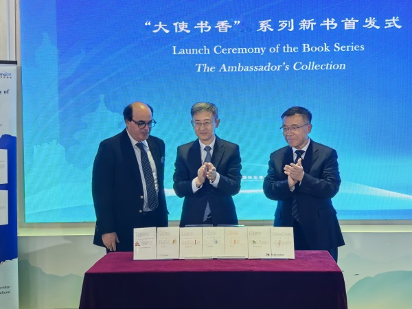 劉大為、萬黎、穆拉德·貝爾哈桑共同為“大使書香”系列新書揭幕