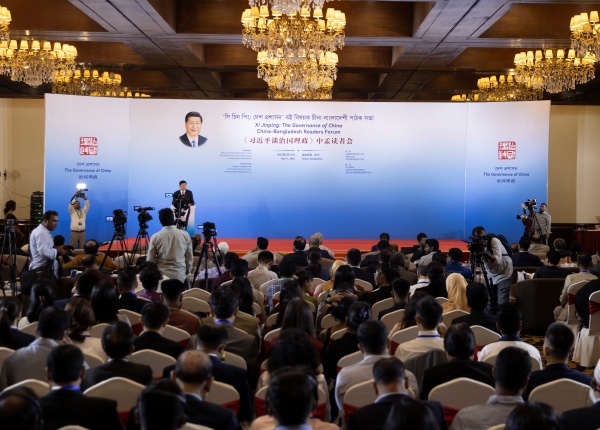 當(dāng)?shù)貢r(shí)間5月11日,作為中孟建交50周年暨中孟人文交流年一項(xiàng)重要活動(dòng),《習(xí)近平談治國(guó)理政》中孟讀者會(huì)在孟加拉國(guó)首都達(dá)卡舉行。活動(dòng)由中國(guó)國(guó)務(wù)院新聞辦公室、中國(guó)外文局和中國(guó)駐孟加拉國(guó)大使館主辦,中國(guó)外文局所屬外文出版社、中國(guó)外文局中東歐與中南亞傳播中心(人民畫(huà)報(bào)社)和孟加拉國(guó)中道傳媒出版有限公司共同承辦。