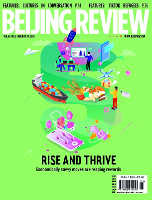 本期封面文章回顧了2024年中國經(jīng)濟在消費、新質(zhì)生產(chǎn)力、外貿(mào)等多方面的表現(xiàn)。2024年中國經(jīng)濟增長預(yù)期目標(biāo)順利實現(xiàn),經(jīng)濟總量邁上130萬億元臺階,國內(nèi)生產(chǎn)總值(GDP)同比增長5%。在外部壓力加大、內(nèi)部挑戰(zhàn)增多的復(fù)雜形勢下,中國經(jīng)濟總量向上、結(jié)構(gòu)向優(yōu)、動能向新,釋放持續(xù)回升向好的信號。接受《北京周報》采訪的專家表示,國際環(huán)境錯綜復(fù)雜,貿(mào)易保護主義愈演愈烈,但隨著發(fā)展新動能新優(yōu)勢不斷壯大、一攬子政策效果不斷顯現(xiàn),經(jīng)濟向好發(fā)展積極因素累積增多。2025年,我國經(jīng)濟將延續(xù)穩(wěn)中有進(jìn)態(tài)勢。