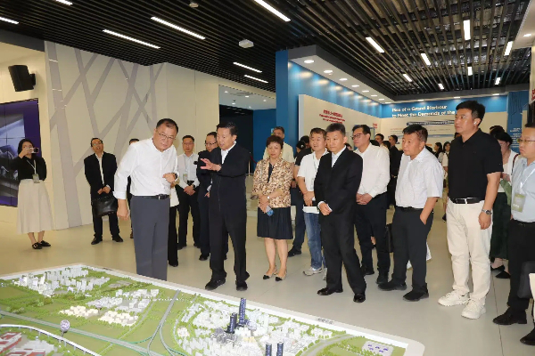 與會嘉賓參觀創(chuàng)新港數(shù)字展廳
