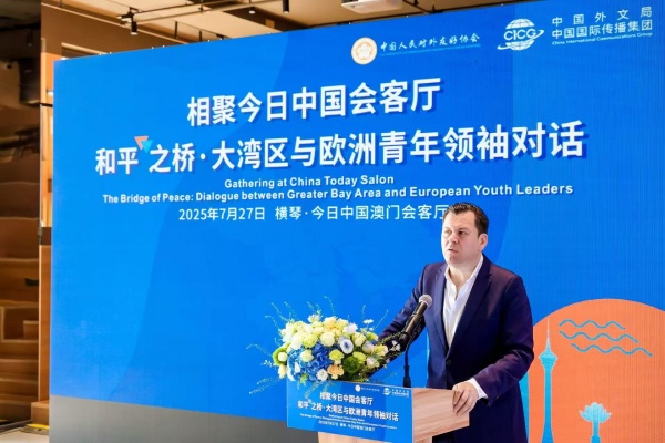 世界青年和平大會(huì)前夕,7月27日,相聚今日中國(guó)會(huì)客廳——和平之橋·大灣區(qū)與歐洲青年領(lǐng)袖對(duì)話活動(dòng)在廣東橫琴粵澳深度合作區(qū)舉辦。