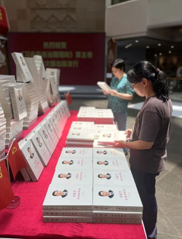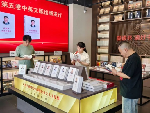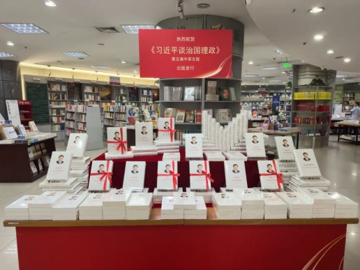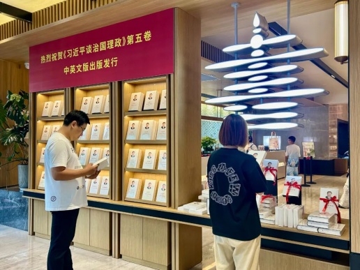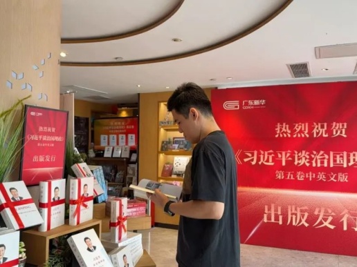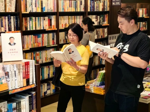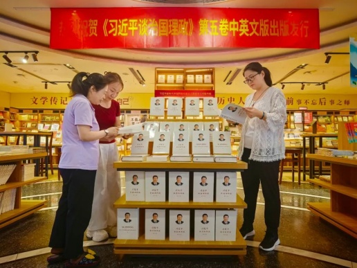 以下為《習(xí)近平談治國(guó)理政》第五卷中英文版圖書(shū)在北京、廣東、浙江、福建、四川、西藏、香港、澳門(mén)主要書(shū)店上架銷(xiāo)售及讀者閱讀的場(chǎng)面。