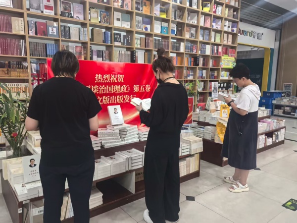 以下為《習近平談治國理政》第五卷中英文版圖書在黑龍江、吉林、遼寧、內蒙古、陜西、甘肅、寧夏、青海主要書店上架銷售及讀者閱讀的場面。