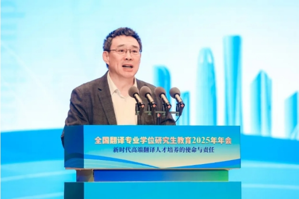 任友群回顧了山東大學(xué)翻譯教育的百年傳承與創(chuàng)新實踐。他指出,翻譯教育要培養(yǎng)既通曉“詩書禮樂”又深諳“國際規(guī)則”的戰(zhàn)略型翻譯人才,要借力人工智能,構(gòu)建“政產(chǎn)學(xué)研用”協(xié)同育人生態(tài),讓人才培養(yǎng)與行業(yè)需求無縫對接。他倡議全國翻譯教育界攜手并肩,進(jìn)一步深化合作,共同推動我國翻譯教育事業(yè)高質(zhì)量發(fā)展。
