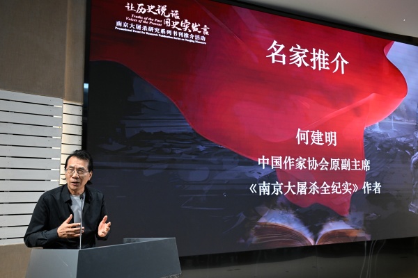 何建明分享了他創(chuàng)作《南京大屠殺全紀(jì)實》一書的背景、過程和感受。這本書以中國視角系統(tǒng)揭露了日軍暴行,還被翻譯成英語、日語、泰語、韓語、越南語、馬來西亞語等文版。何建明表示,只有真正深入地了解南京大屠殺的史實,才能更加認(rèn)識到今天仍要銘記歷史的意義。如今的世界并不安寧,世界上和平的聲音還不夠多,中國是一個和平崛起的國家,我們有責(zé)任、有義務(wù)承擔(dān)起這個使命。