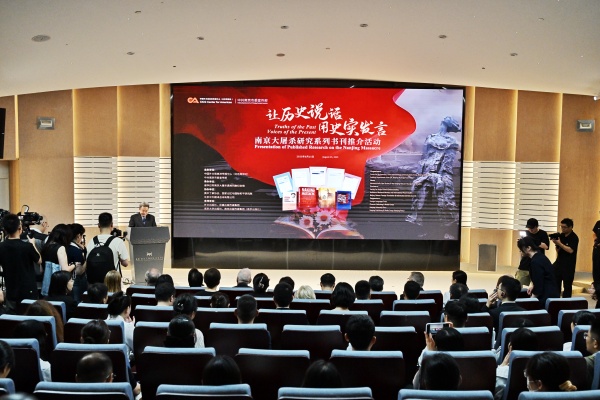 8月15日,“讓歷史說話 用史實發(fā)言”南京大屠殺研究系列書刊推介活動在侵華日軍南京大屠殺遇難同胞紀(jì)念館舉辦。中國外文局副局長于運全,中共江蘇省委宣傳部副部長徐寧,中共南京市委常委、市委宣傳部部長季鐵軍出席活動。