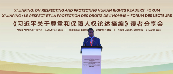 陳海表示,《習近平關于尊重和保障人權論述摘編》展現(xiàn)了中國在推進人權保障方面的實踐探索與經(jīng)驗成果,為海外讀者理解習近平主席關于尊重和保障人權的重要理念提供了新視角,也為國際社會了解中國人權觀提供了權威參考。對于發(fā)展人權事業(yè),他指出,中非雙方認為必須堅持以人民為中心,走符合本國國情的人權發(fā)展道路,一致反對將人權問題政治化。中國和埃塞俄比亞在中非人權交流合作中發(fā)揮了示范作用。依托深厚政治互信和人民友好基礎,中非人權交流合作不僅將推動中非人權事業(yè)發(fā)展,還將為深化中非命運共同體、促進人類進步事業(yè)作出貢獻。