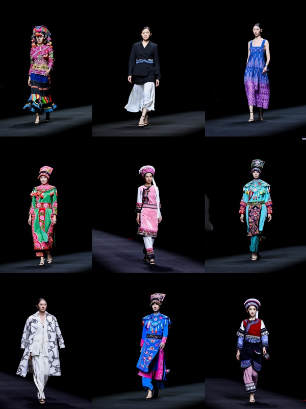 中國(guó)非遺服飾展示環(huán)節(jié),以來自洛陽(yáng)、漢中、五指山、大理和楚雄五地的特色服飾為載體講述中國(guó)故事。洛陽(yáng)漢服形制典雅、禮韻深遠(yuǎn),彰顯華夏千年衣冠文明;羌族服飾攜山野清風(fēng)而至,繡紋深藏民族印記與吉祥寓意;海南黎錦華美展現(xiàn)三千年非遺技藝,植物染紋樣織就南海瑰麗傳說;大理白族服飾凝結(jié)風(fēng)花雪月,針線間詮釋自然詩(shī)意與生活哲學(xué);楚雄彝族服飾紋樣華麗、銀飾精美,彰顯彝族文化獨(dú)特魅力。
