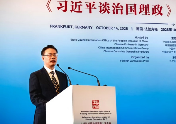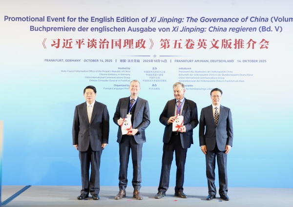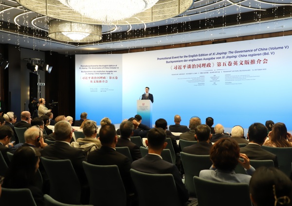 當?shù)貢r間10月14日,《習近平談治國理政》第五卷英文版推介會在德國法蘭克福舉辦。中國駐德國大使鄧洪波,中國外文局副局長余應福,德國漢學家、歷史學家培高德,德國黑森州國際部前部長博喜文出席活動并致辭。