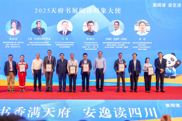 副局長(zhǎng)謝剛應(yīng)邀出席開(kāi)幕式并為2025天府書展閱讀形象大使頒發(fā)聘書。