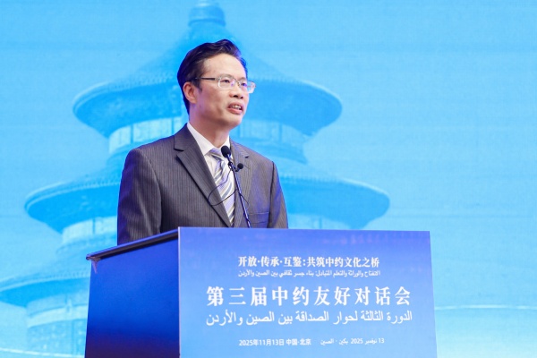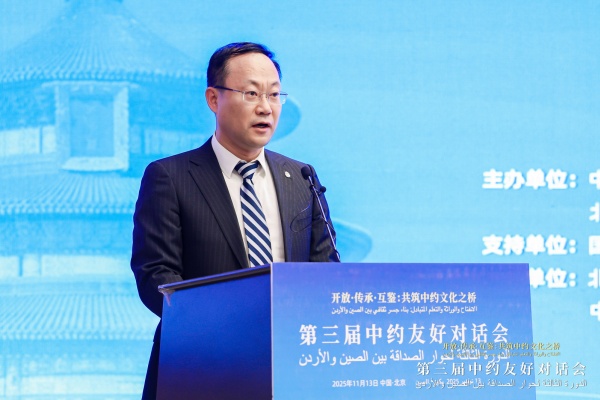 11月13日,第三屆中約友好對(duì)話會(huì)在京舉行。中國外文局副局長余應(yīng)福,約旦駐華大使胡薩姆·侯賽尼,中國駐約旦大使郭偉,北京外國語大學(xué)黨委常委、副校長丁浩致辭。約中友好協(xié)會(huì)主席賈邁勒·達(dá)穆爾、國家開發(fā)投資集團(tuán)有限公司新聞發(fā)言人張亮作主題發(fā)言。本屆對(duì)話會(huì)以“開放·傳承·互鑒:共筑中約文化之橋”為主題,來自中國、約旦、埃及等多個(gè)國家和地區(qū)的高校、企業(yè)、政府機(jī)構(gòu)代表共200余人參加活動(dòng)。