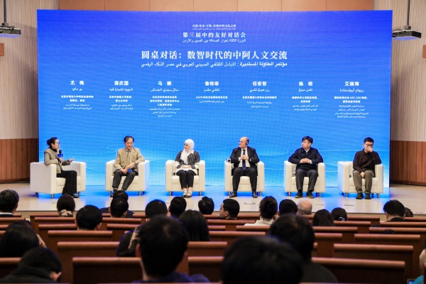 在圓桌對(duì)話環(huán)節(jié),北京外國語大學(xué)阿拉伯學(xué)院副院長、教授尤梅,北京外國語大學(xué)教授、博士生導(dǎo)師薛慶國,約旦漢學(xué)家理事會(huì)成員、青年漢學(xué)家馬娜·阿卜杜拉-迪夫·卡瑪什,CGTN阿拉伯語國際頻道記者魯特菲(阿爾及利亞籍),北京外國語大學(xué)阿拉伯語學(xué)院教師任宏智,捷通華聲公司副總經(jīng)理、總架構(gòu)師陳明,國投投資企業(yè)APC CEO助理、董事會(huì)秘書助理艾瑞海等中外嘉賓,圍繞“數(shù)智時(shí)代的中阿人文交流”這一主題進(jìn)行深入探討,分享了他們借助新技術(shù)、新平臺(tái),開展中約、中阿人文交流工作的實(shí)踐成果與思考。