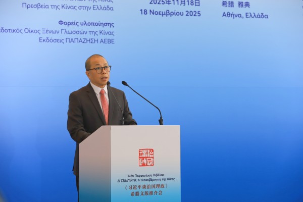 謝剛表示,黨的二十屆四中全會(huì)審議通過的《中共中央關(guān)于制定國民經(jīng)濟(jì)和社會(huì)發(fā)展第十五個(gè)五年規(guī)劃的建議》,系統(tǒng)部署了擴(kuò)大高水平對(duì)外開放等重大舉措,充分展現(xiàn)了中國堅(jiān)持開放合作、互利共贏的信心。他指出,《習(xí)近平談治國理政》希臘文版的出版,將幫助希臘讀者深入了解新時(shí)代中國以全面深化改革為根本動(dòng)力、以人民至上為根本立場、以文明互鑒為對(duì)話橋梁、以多邊主義為全球治理基本路徑的治國理政智慧。期待以書為媒,進(jìn)一步拉緊中希文明互鑒和務(wù)實(shí)合作紐帶,為推動(dòng)兩國全面戰(zhàn)略合作伙伴關(guān)系發(fā)展注入新的思想動(dòng)力。